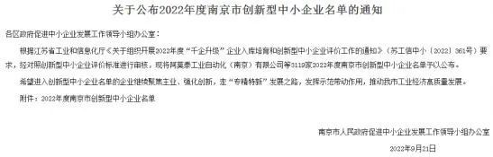 近日,南京市工业和信息化局发布2022年度“创新型中小企业”名单,南京木禾环境科技有限公司成功审核通过。“创新型中小企业”是对公司创新能力的充分肯定,和对公司科研实力和科技成果转化能力的认可。